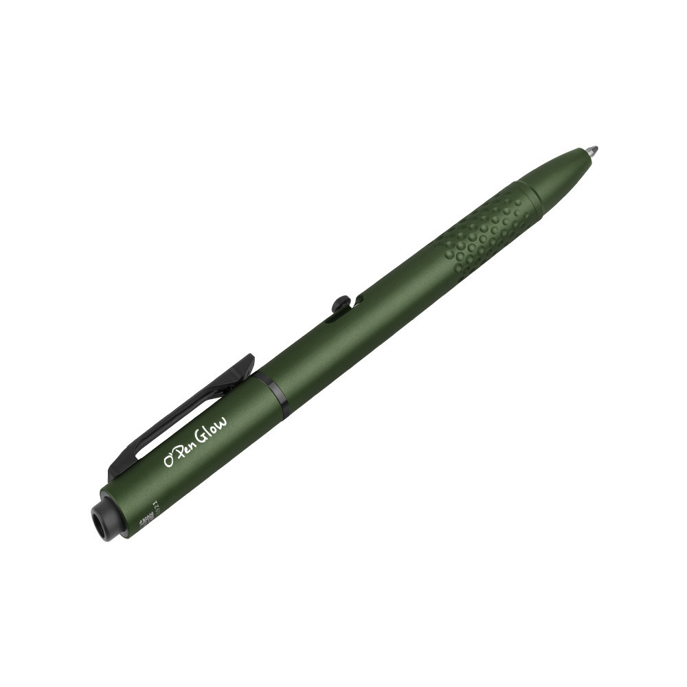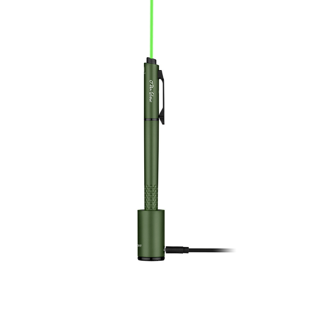 Az Olight O'pen Glow kombinálja a toll, a tollcsipesz LED-fény, a tollhegy LED-fénye és a zöld mutatósugár funkcióit egyetlen elegáns eszközben, amely alkalmas íráshoz, olvasáshoz vagy prezentációhoz.